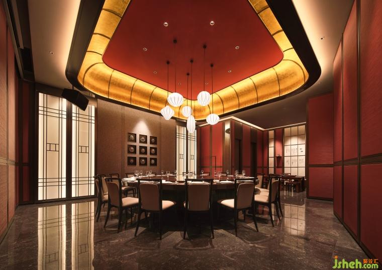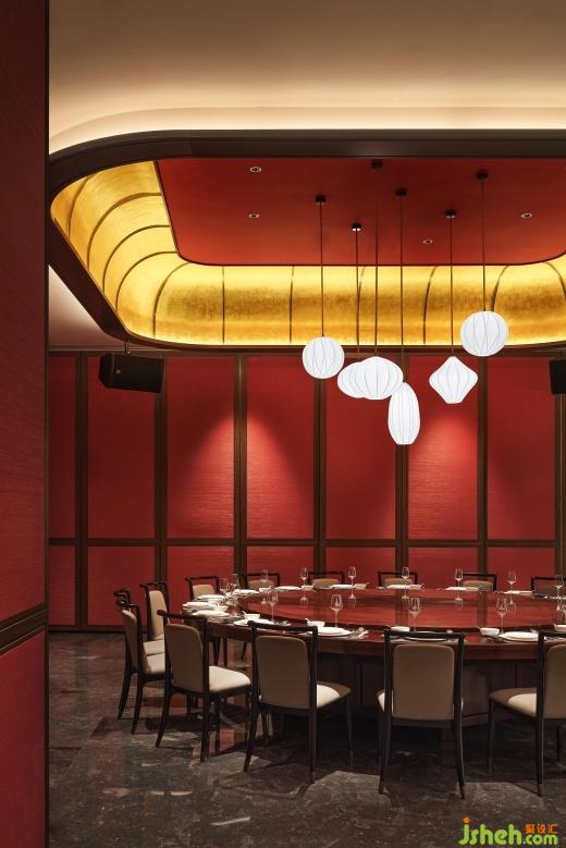餐廳設(shè)計(jì)運(yùn)用了濃郁的紅色天鵝絨漆搭配金箔塑造輝煌的風(fēng)華,鋼化夾絲玻璃配合屏風(fēng)造型,塑造歲月痕跡風(fēng)華再現(xiàn)的空間。