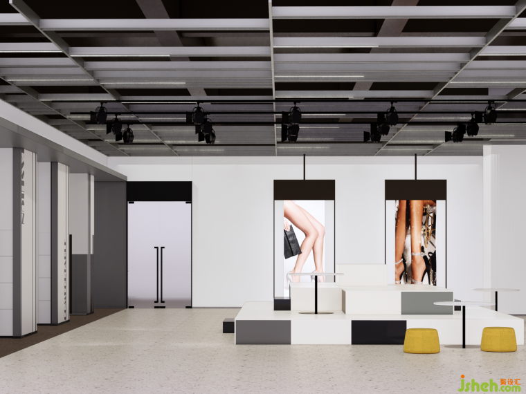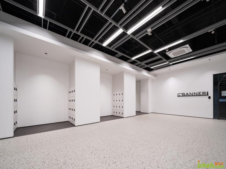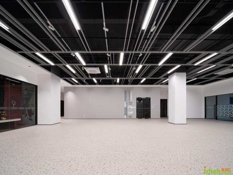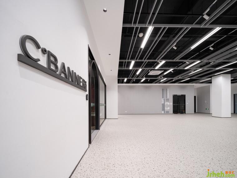空間整體選用黑、白、灰三種中性色彩賦予空間沉浸純粹的視覺感受,各樓層依據(jù)品牌的不同,從各自品牌VI色中,擷取提煉出空間輔色,將各自分區(qū)空間串連起來,成就單層空間的整體性。