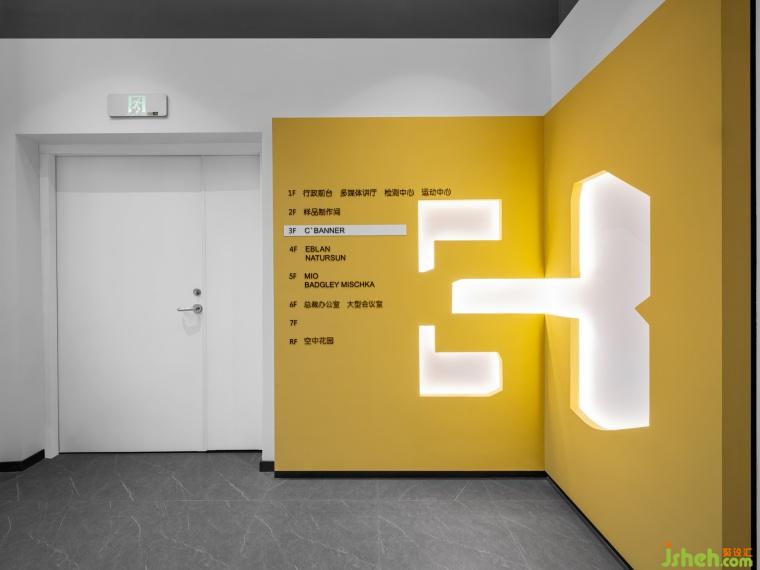 總部設(shè)計(jì)每層電梯廳以明亮的黃色系突出各樓層導(dǎo)視,點(diǎn)出動線樞紐帶以及垂直的動線關(guān)系。