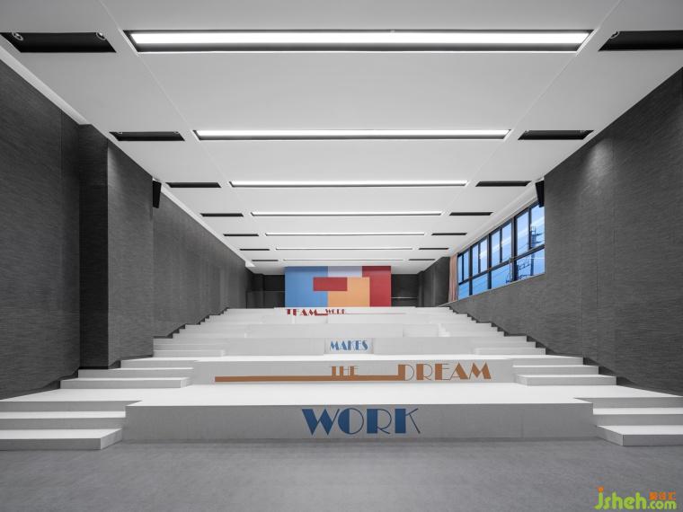 總部設(shè)計(jì)多媒體廳摒棄了傳統(tǒng)的階梯固定座椅布局,轉(zhuǎn)而采用階梯座位混搭的創(chuàng)新模式,這一改變讓整體空間洋溢著自由與靈動(dòng)的氣息,盡情展現(xiàn)著創(chuàng)意無垠、自由不羈的蓬勃活力。
