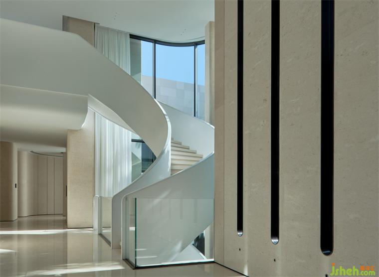 微風(fēng)輕拂過,激起層層漣漪。波瀾的啟迪下,我們找到了自然弧線的美感與韻律。這也成為旋轉(zhuǎn)樓梯的靈感,流暢線條優(yōu)雅地蜿蜒上升,既顯得輕盈無比,又透露著堅固的支撐力。如同漣漪般輕盈而富有彈性。