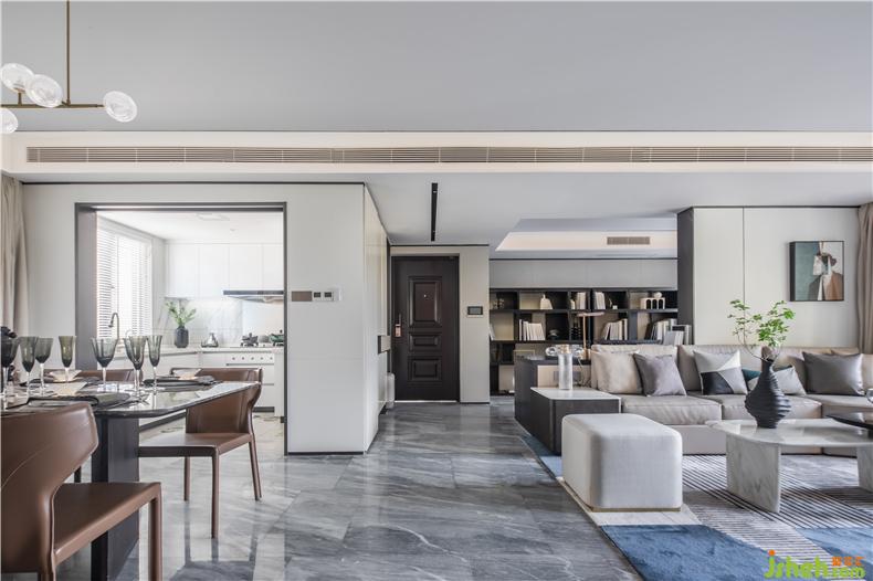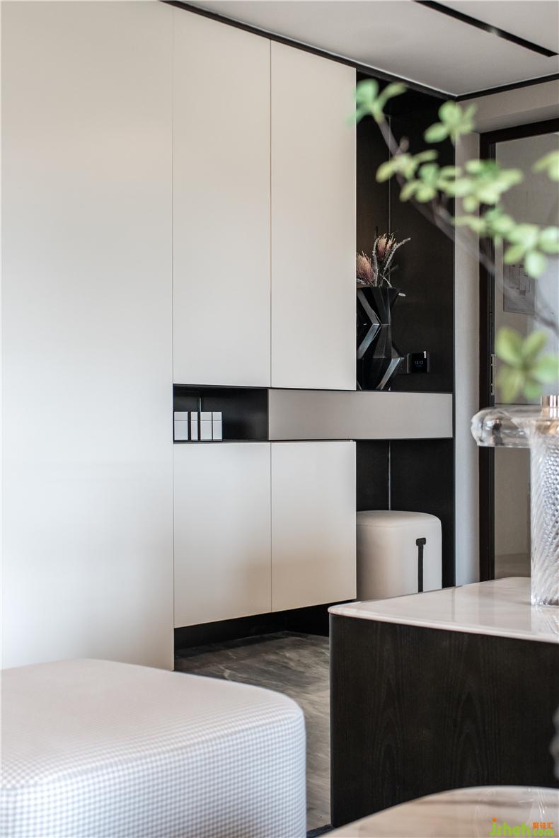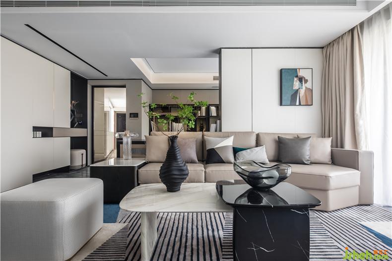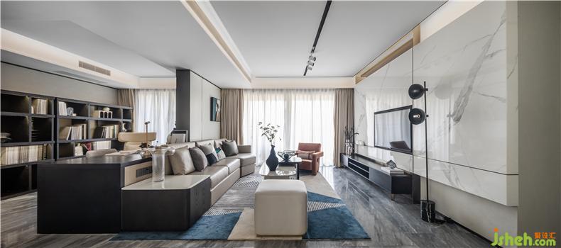 客廳運(yùn)用黑色的細(xì)小線條與大面積柔和的木飾面、大理石的考究比例劃分,結(jié)合開放式的書房,就像透過穿梭于香港與內(nèi)地的男主人其鏡頭,記錄下最具代表性的影像,進(jìn)而通過藝術(shù)空間藝術(shù)手法的拼接,樣板房設(shè)計成為獨(dú)特視角,體現(xiàn)了兩地的緊密聯(lián)系與蓬勃發(fā)展的時代脈搏