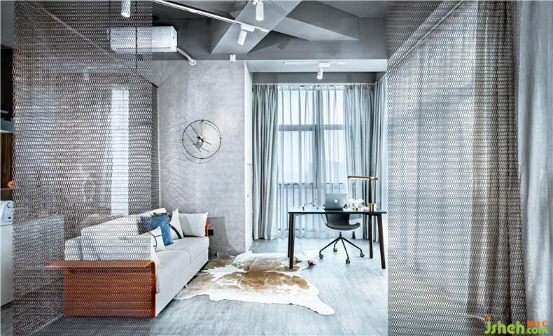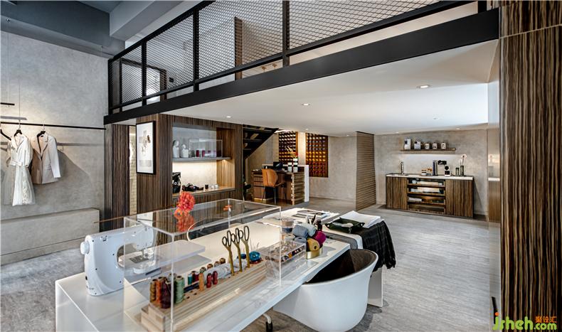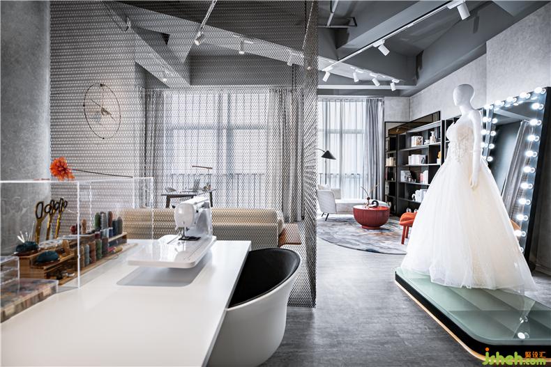 二層是夾層的攝影主題,搭建后的空間比較窄小,樓梯欄桿是主要的立面隔斷,為盡量減少壓抑感,必然要選擇通透的材料,玻璃與網(wǎng)格都是滿足的選擇,但玻璃透光卻不透風(fēng),且商業(yè)空間人流量大,損耗高,室內(nèi)設(shè)計師玻璃的安全性與實用性不如網(wǎng)格,于是最后選擇了搭建鋼結(jié)構(gòu)相通的鋼網(wǎng)隔斷,相呼應(yīng)的,樓下的區(qū)域隔斷也延用了鋼網(wǎng),隔而未隔,趣味與功能一體