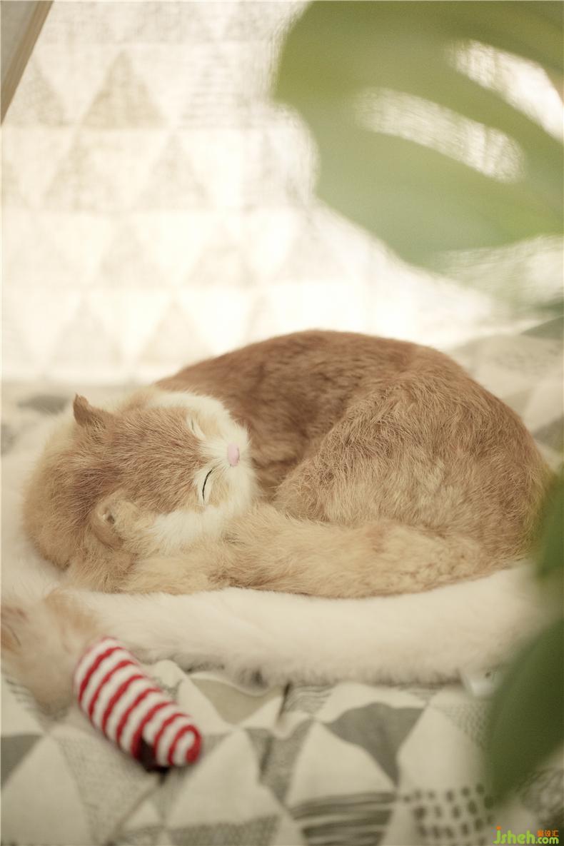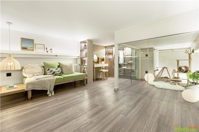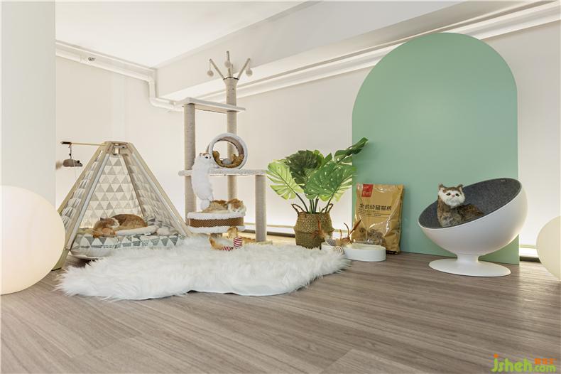 一高一矮由藤蔓與原木制成的貓爬架,對(duì)立與墻角,填充了墻體的空白,樣板房設(shè)計(jì)實(shí)用性與裝飾性兼具。玻璃房的設(shè)計(jì)讓主人既可以做自己喜歡的事情,邊跟貓玩耍,又或在休息區(qū)觀察貓咪的舉動(dòng)