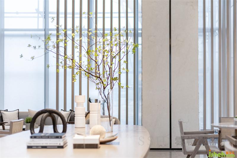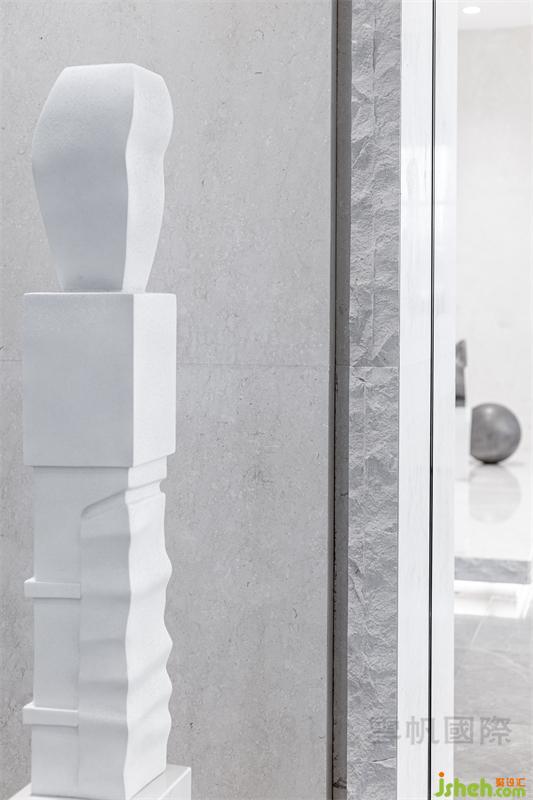 每一個(gè)角落都存在著設(shè)計(jì)的考量,每一個(gè)節(jié)點(diǎn)都是細(xì)節(jié)的體現(xiàn)。在特色肌理墻面、體快感的穿插結(jié)合景觀的處理,與自然的米色石材質(zhì)成為貫穿空間中的藝術(shù)力量。