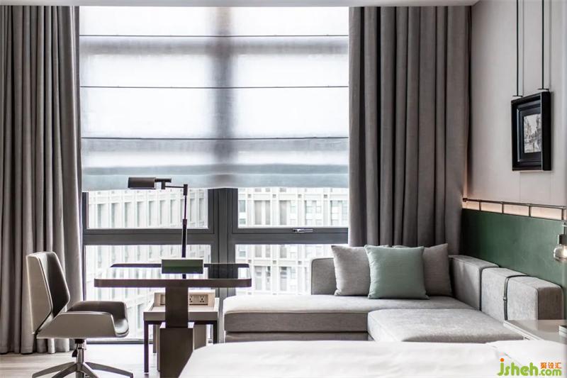 在客房空間中,工業(yè)、人文、自然、科技的和諧融合,
