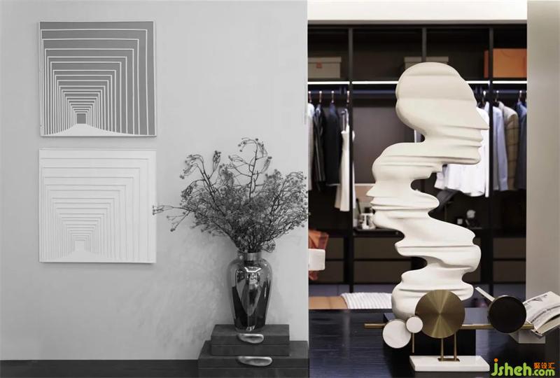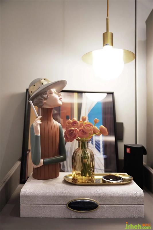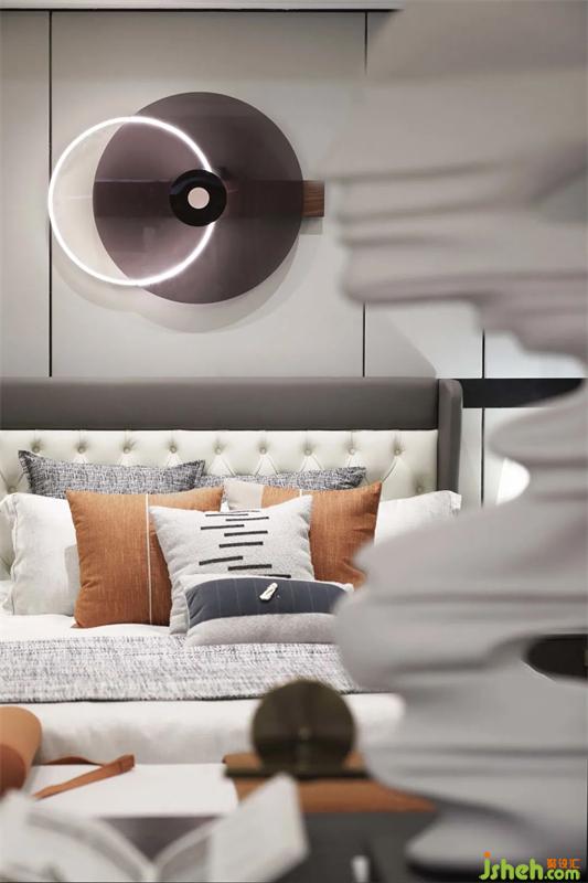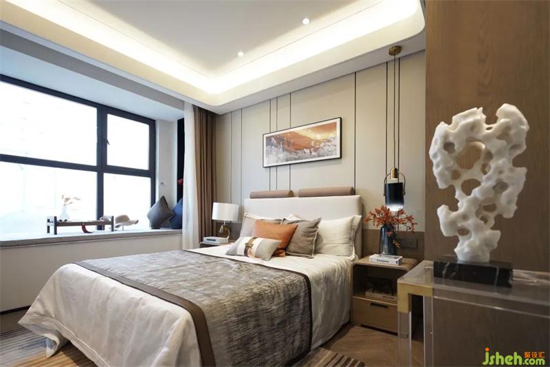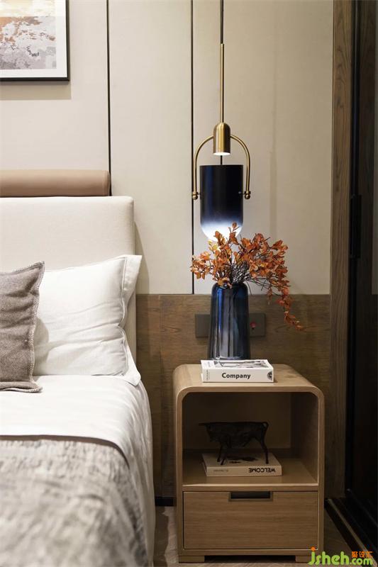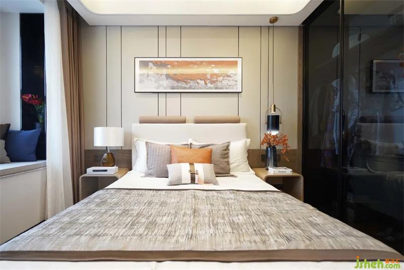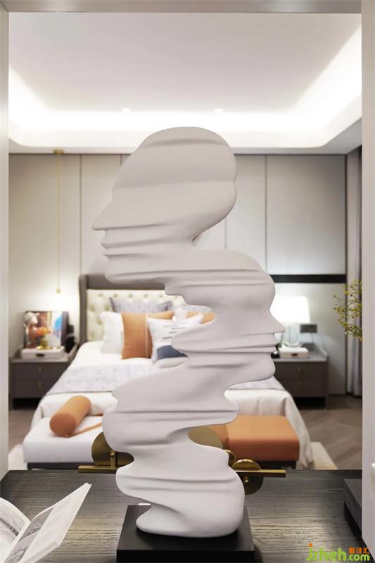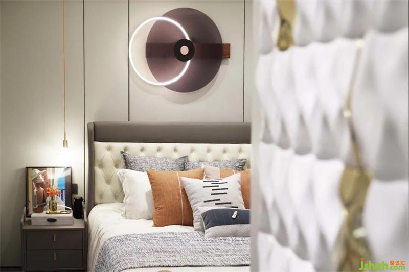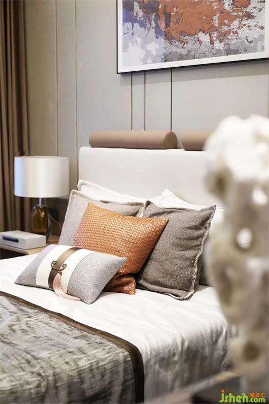 次臥在滿足功能的使用上還增加材質(zhì)間碰撞的美感,平滑的觸感,樣板間設(shè)計(jì)是品質(zhì)生活的溫潤感受,搭配以藝術(shù)畫于細(xì)節(jié)處提升整體的質(zhì)感。