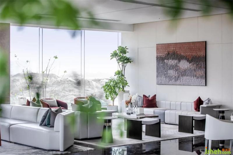 深度洽談區(qū)主要體現(xiàn)舒適性,大面積的米色、白色營造松弛舒適感,紅色點(diǎn)綴生發(fā)溫情暖意,藝術(shù)裝飾畫提升空間審美格調(diào)。