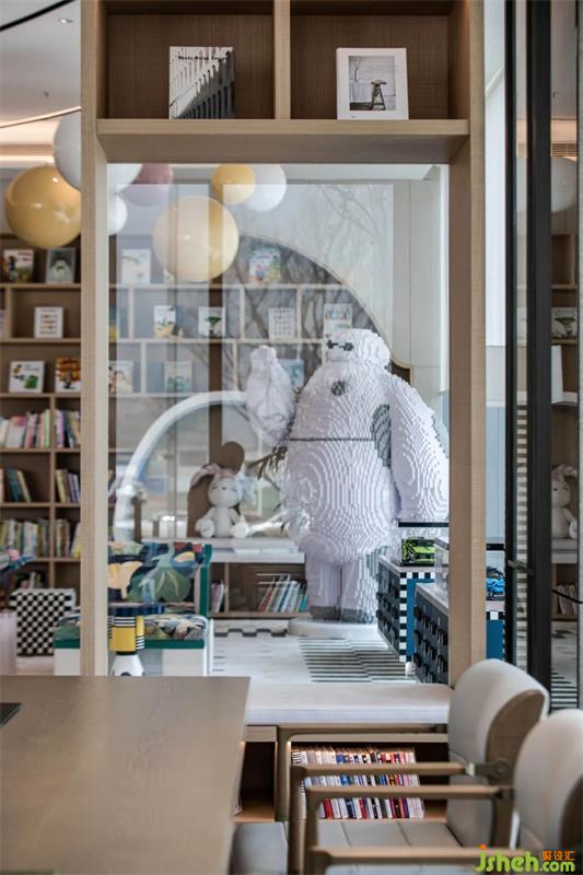微笑的大白一下拉近了和孩子們的距離,售樓處設(shè)計(jì)消除了兒童對陌生環(huán)境的恐懼,蘑菇書架和樂高拼圖墻不一樣的視覺,映照兒童的純真,讓孩子在此盡興玩耍,從情感上建立對新居的憧憬。