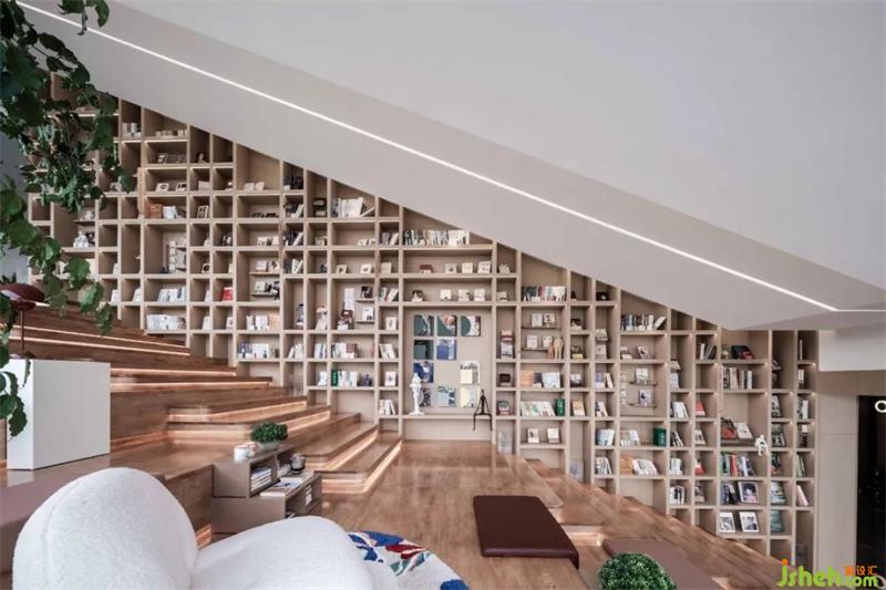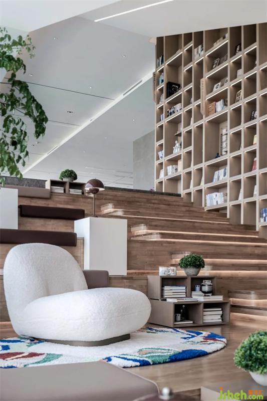 故煙,心聲也;書者,心畫也。階梯閱讀區(qū),木飾地板與紅色坐墊,鋪呈書院風(fēng)貌;席地而坐,體現(xiàn)尊師重道的內(nèi)在涵養(yǎng)和儀態(tài)風(fēng)范。