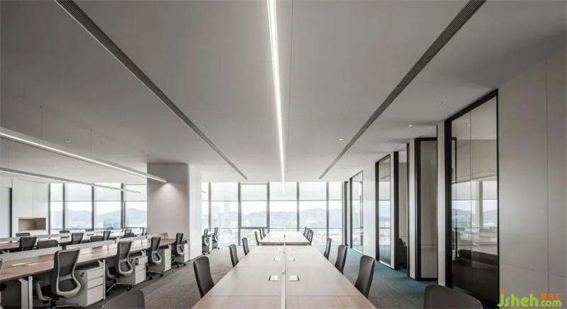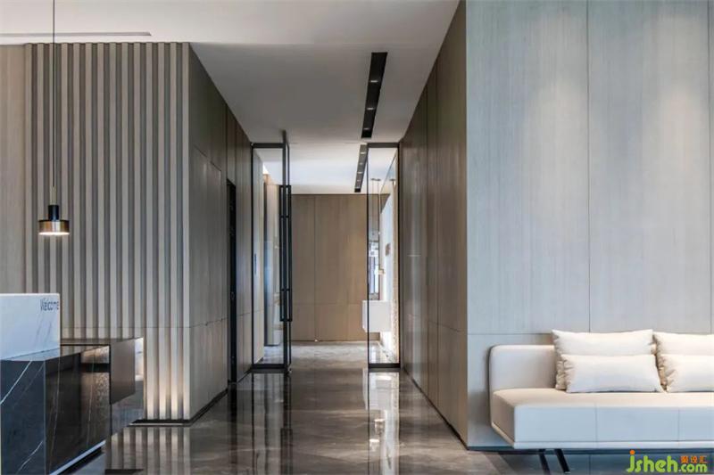 “五行之始,盛德在木”,空間中大量采用木質(zhì),辦公總部設(shè)計并以柵格的形式,通過燈光、金屬、石材的組合,成為襯托柵格的背景,光影的明暗與變化,在淺的墻面、深的地面之間,創(chuàng)造出一種飄動的狀態(tài),形成斑斕卻又寧靜的視覺效果。