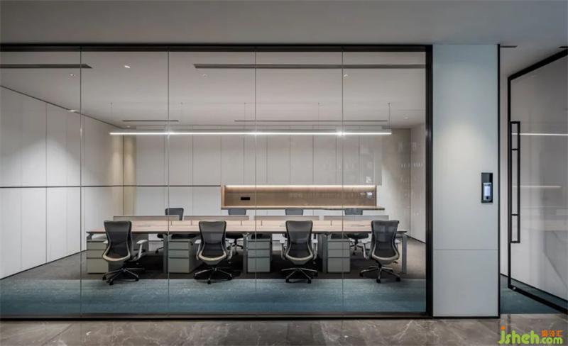 辦公總部設(shè)計(jì)會(huì)議室透明材質(zhì)的巧思,通透的觀感和體驗(yàn),將輕盈感、科技感融入其中,是私密功能的獨(dú)出心裁,滿足每一刻的私屬領(lǐng)地。