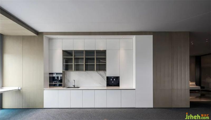 茶水間采用有溫度的木色和有潔凈體質(zhì)的白色,創(chuàng)造出具有鮮明企業(yè)特色和滿足員工心理歸屬感的空間。