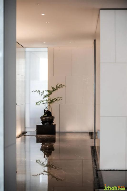 作為辦公場(chǎng)所,科技感是當(dāng)仁不讓的氛圍主角。辦公總部設(shè)計(jì)科技感輕盈、前衛(wèi)且充滿未來(lái)氣息,而包容性極強(qiáng)的黑白空間恰好能表達(dá)這種復(fù)雜抽象的意境。充滿藝術(shù)感的擺件以綠植為接點(diǎn),像倒影般保加利亞灰石材的地板??此坪?jiǎn)潔的色調(diào)一氣呵成,神秘的未來(lái)感躍然眼前,留下科技感滿滿的第一印象。