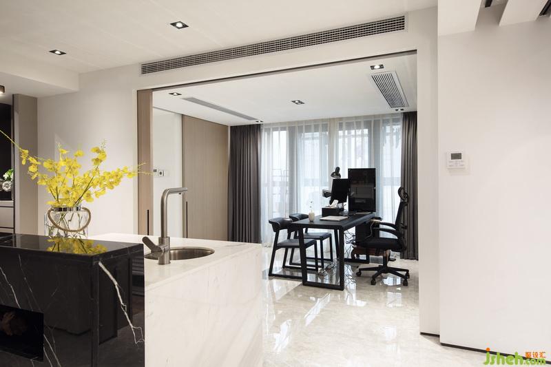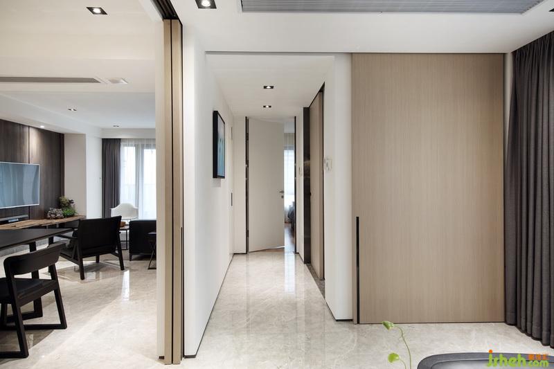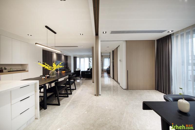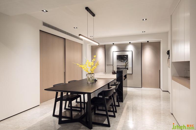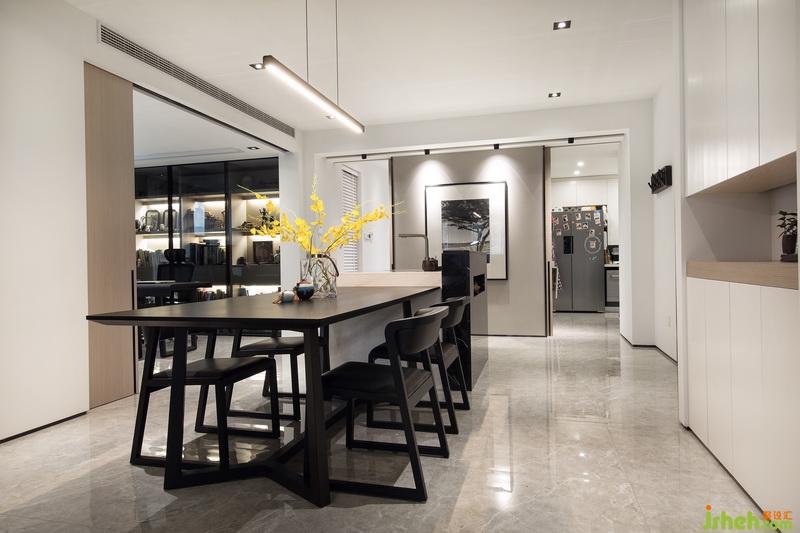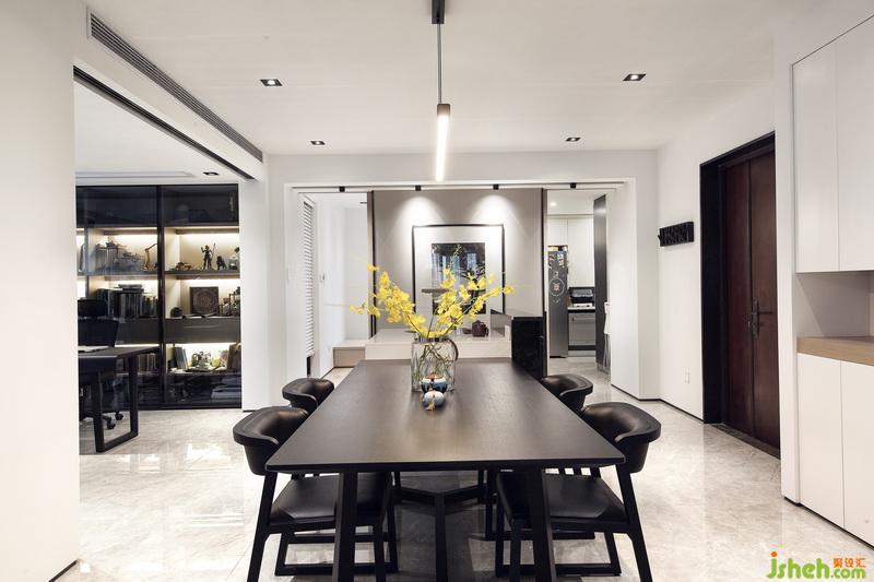 經(jīng)過(guò)室內(nèi)設(shè)計(jì)師的巧妙規(guī)劃,原本客廳和書房的位置對(duì)調(diào),使客廳餐廳在同一動(dòng)線上,利用移門這種班隔斷的形式,將書房和客餐廳公共區(qū)域進(jìn)行有效的劃分,空間避免了使用過(guò)多的元素造成的雜亂感,在材質(zhì)和顏色的選擇上比較整體同一,簡(jiǎn)潔大氣。