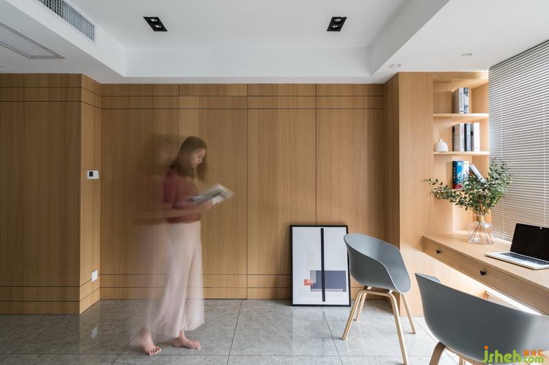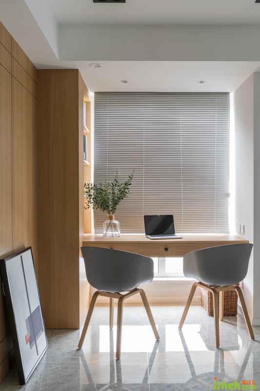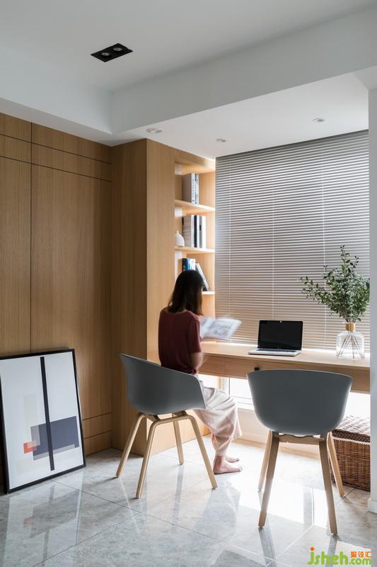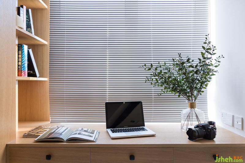 設(shè)計(jì)公司在窗邊搭建書(shū)桌,建立開(kāi)放式的書(shū)房區(qū)域,良好的采光讓工作區(qū)充滿了動(dòng)力。