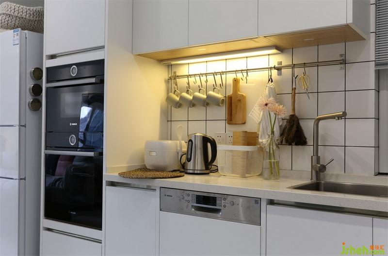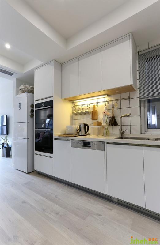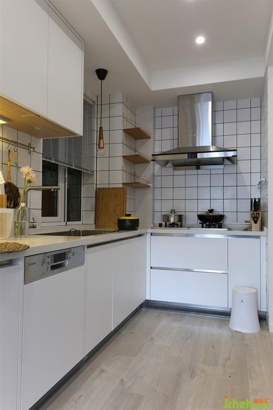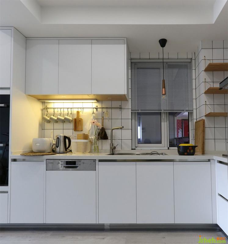 開放式廚房,原灶臺(tái)和水槽位置沒有調(diào)整,水槽上面增加一盞小吊燈,洗菜時(shí)候可以看的更清楚。