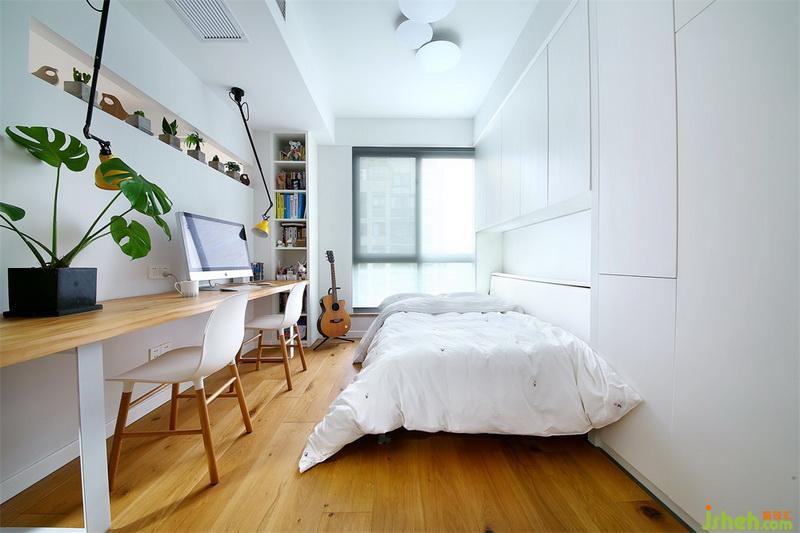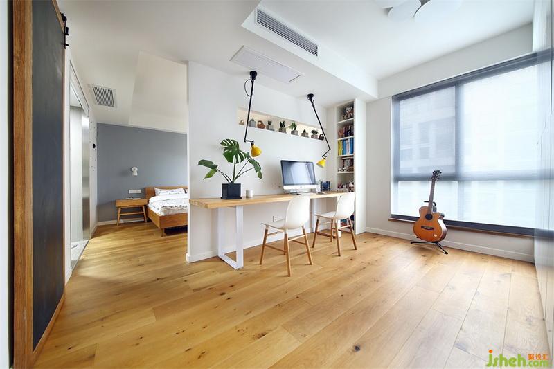設(shè)計(jì)公司把書房與主臥的相結(jié)合,將視覺效果達(dá)到極致,簡(jiǎn)潔的造型墻面配有木質(zhì)的地板,空間變得溫暖起來(lái),帶有明亮而質(zhì)感的空間氛圍。