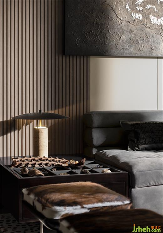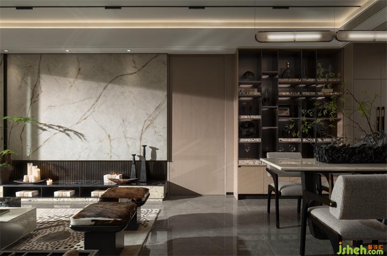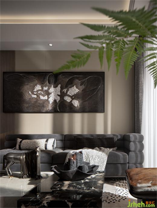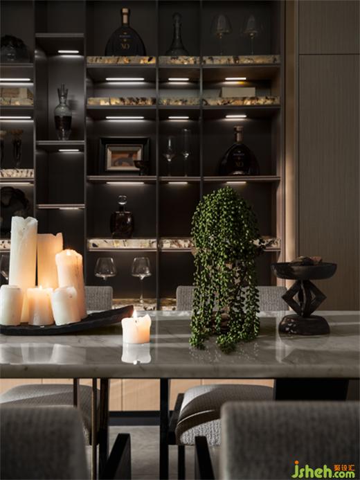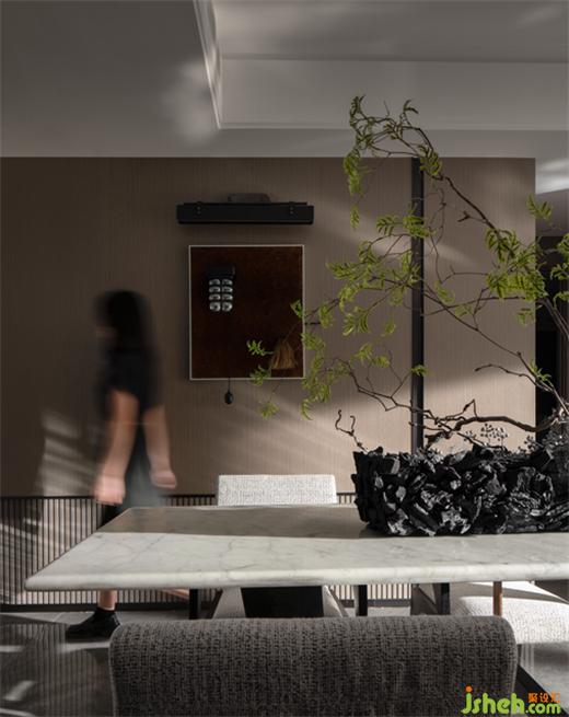 在開放的餐廳空間格局中,一盞盞燈火,點(diǎn)燃視覺感官的藝術(shù)氛圍,微光生影,光與影子靈動(dòng)結(jié)合,同時(shí)也讓整個(gè)家多了幾分藝術(shù)光感的恬靜氛圍。當(dāng)參觀視線隨著人物聚焦至墻面,樣板房設(shè)計(jì)一幅抽象掛畫作為整體中獨(dú)特的一角,極具視覺藝術(shù)性,不經(jīng)意間喚醒并點(diǎn)亮空間。借一半煙火一半藝術(shù)詩(shī)意,于鬧市之外造一室自在逸趣。