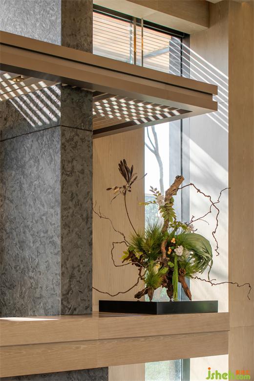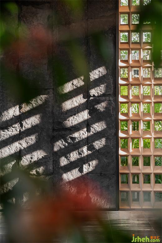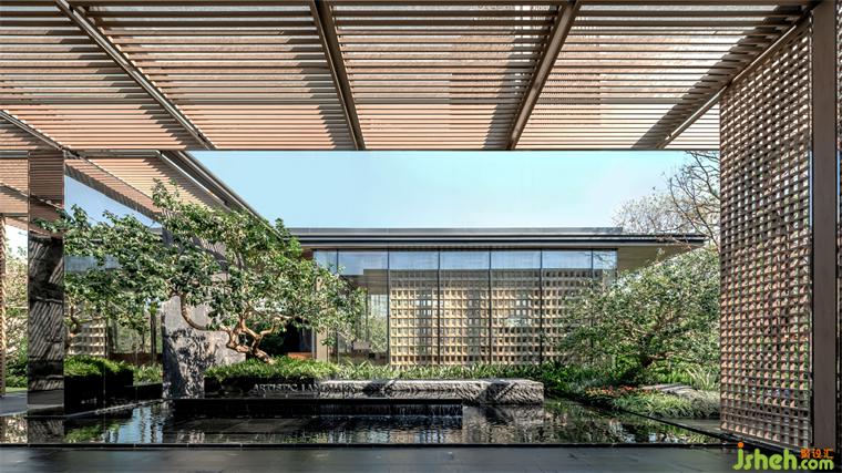 光影連接著木與石的交織,看枝葉慢長,草木叢生,售樓處設計構建出城市里的一處心靈凈土。