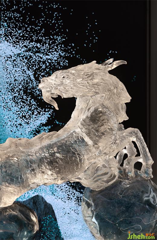 水麒麟吸引了入門第一視線,鉑晶的質(zhì)感清澈剔透,大刀闊斧勾勒瑞獸的鱗片,栩栩如生。