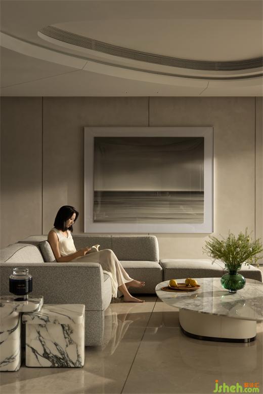 三亞私宅設計因地制宜,將游艇的流線型線條融入空間中,米色材質(zhì)正如沙灘干凈細膩地鋪展開來,回應海上的帆船港。