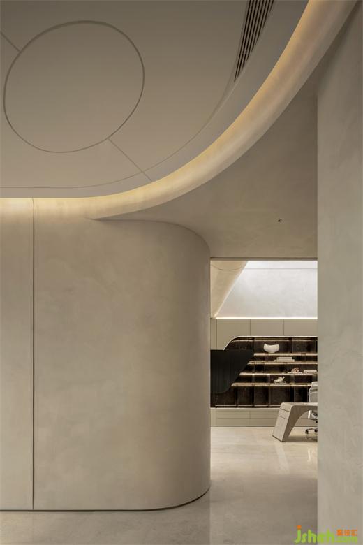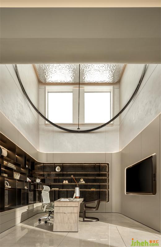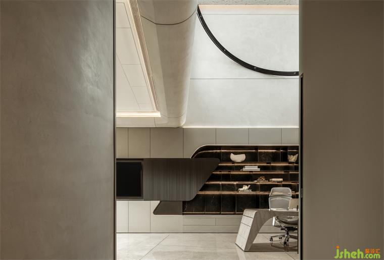臥室從電影《遺落戰(zhàn)境》的空間場景凝練靈感,干練簡潔的線條令空間充滿前衛(wèi)的未來感。