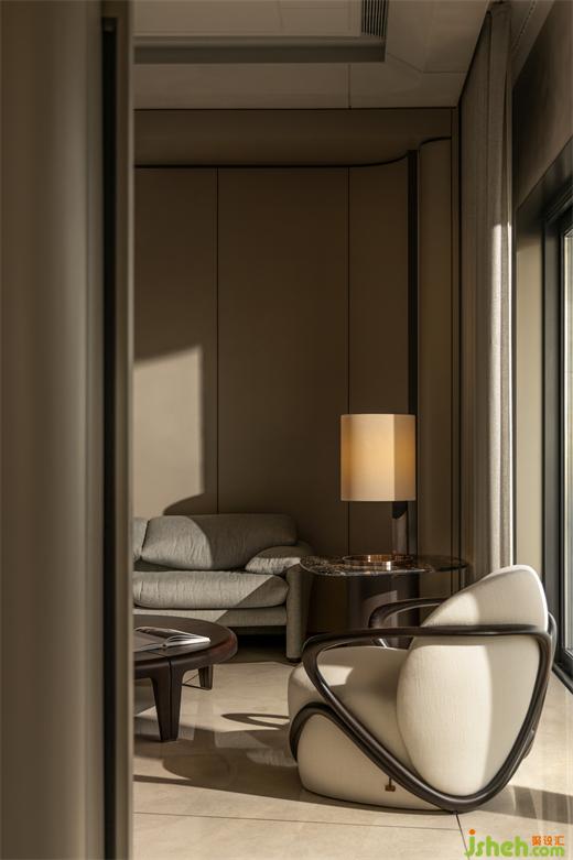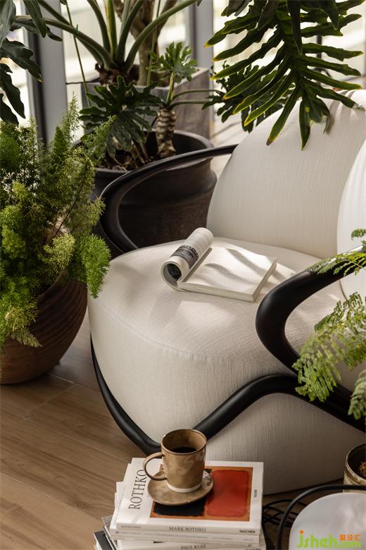 女主人熱愛閱讀寫字,書房便是她最好的獨處空間。配備獨立的小客廳和陽臺,既能擁有一片私密天地,與自我靜心相處,也具備社交的開放性自由,招待好友暢談心語。