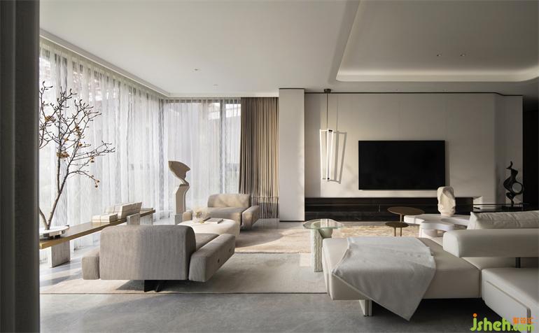 三面環(huán)水,一面公園,中庭景觀的生態(tài)優(yōu)勢,將居所置于自然之間,而回應這一對話最貼切的設計語言,便是化繁為簡,成都樣板房設計從空間格局到色彩關系,到各空間的尺度和藝術運用,減少設計的痕跡,用最適合的展現(xiàn)手法,為空間和自然的融合增色。