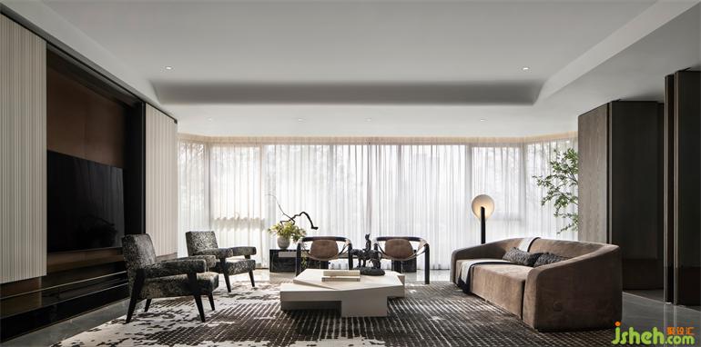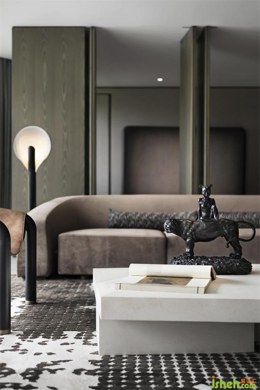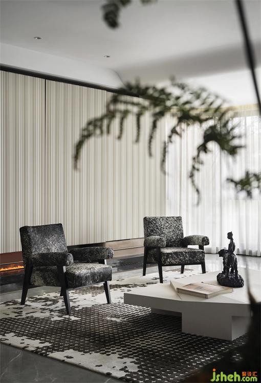 空間的高級(jí)感無(wú)需靠堆砌來(lái)完成,適當(dāng)?shù)牧舭资歉唠A的呈現(xiàn)。樣板房設(shè)計(jì)為配合大尺度的橫向空間,縱向空間摒棄了多余的裝飾,以柔美的流線型搭配局部疊級(jí)形式,保留整體空間的大氣簡(jiǎn)潔又不失質(zhì)感美學(xué)格調(diào)。