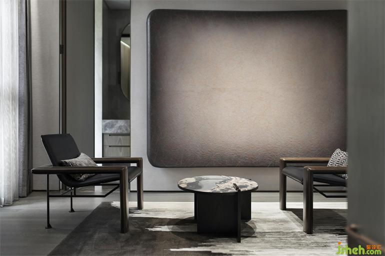 一抹陽光從湖面躍入室內(nèi),緩緩游走于空間里的每個角落,從皮革肌理到雪花馬毛的觸感,從石材的紋理變化到木的溫潤生長,著墨于光影和材質(zhì)的描繪,將一物一器連為一個整體,勾勒出眼前豐富的空間形態(tài)。