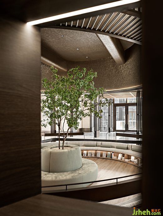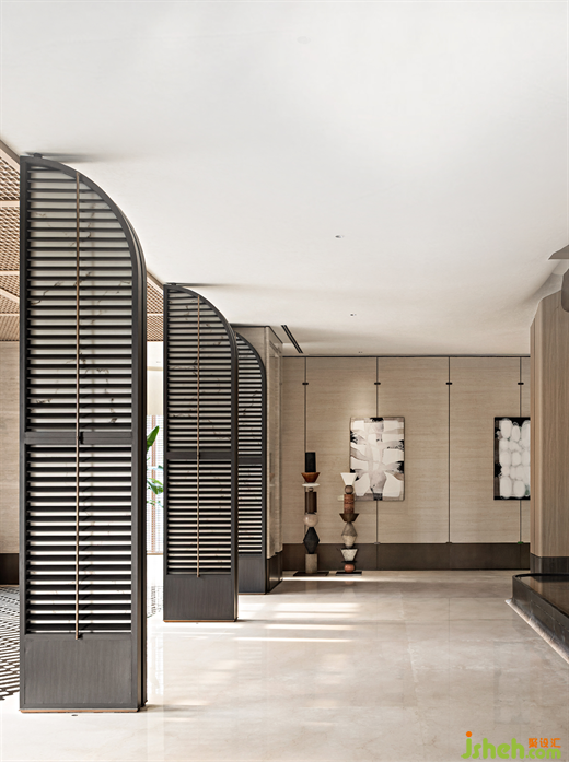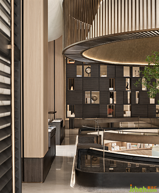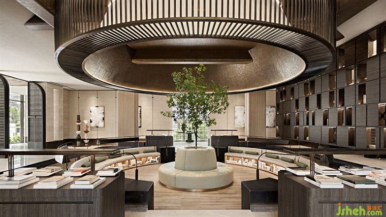 除去氣韻的回應,元素的對話亦是設計的重要語言。半下沉的書吧,帶來一份極富安全感的包裹感,縈繞的流水、浮動的疏影,售樓處設計則給心靈注入了靈動的生命力。