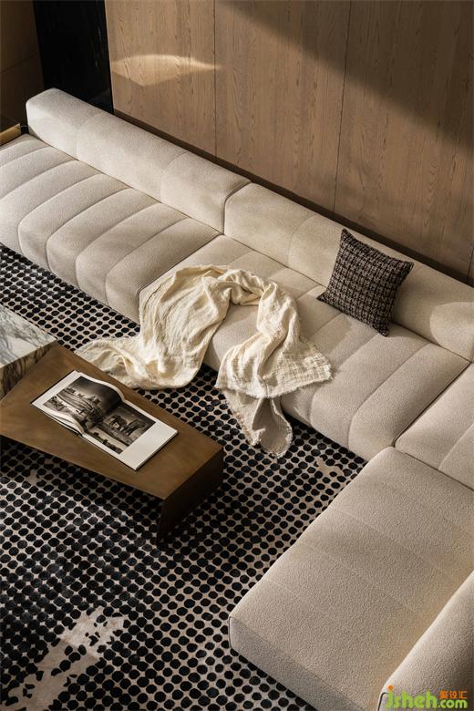 紅姐平時會設(shè)置一些宴會,客餐廳是主要的宴請空間,因此客廳的通透感和品質(zhì)感非常重要。沙發(fā)選擇了Minotti的原版沙發(fā),自由柔和的款型為格調(diào)和流動奠定了基調(diào)??筒蛷d以片墻做了半隔斷,巨大的落地窗將庭院的景觀引入室內(nèi),空間與空間,自然與空間,人與空間都是流動的。