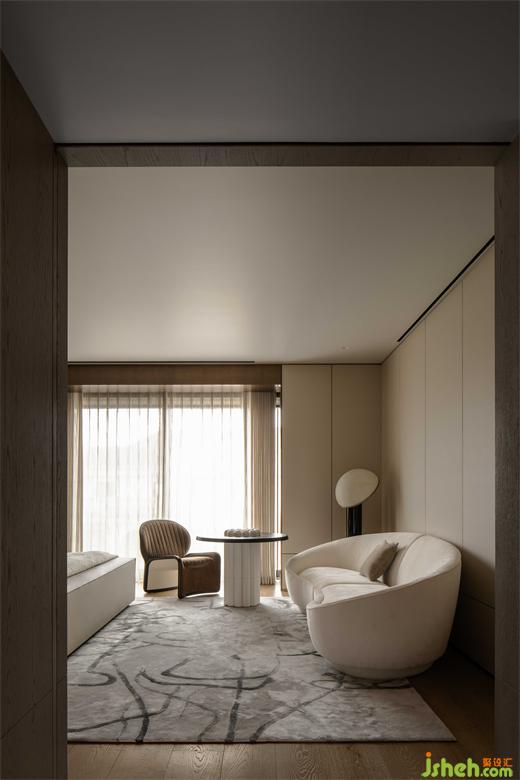 紅姐習慣了老房子的床,因此在設(shè)計的時候,床的長寬高都進行了定制,最大程度地滿足原有的使用習慣。“而這里也是一個真正的主套房,所有必要的空間都在臥室旁邊包括雙衣柜、冥想空間和戶外休閑空間。