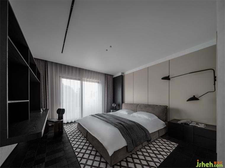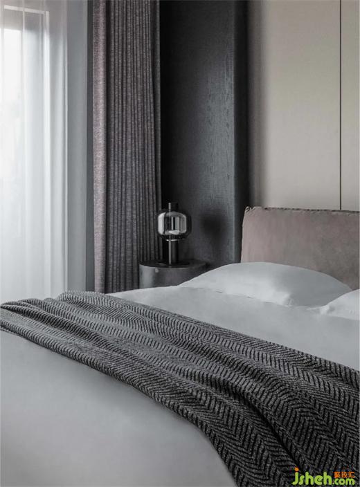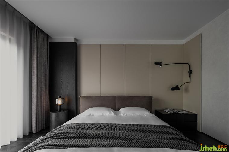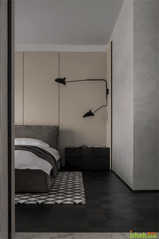 紅姐的兒子在倫敦讀物理系,臥室的設(shè)計貼合居者的個人審美追求,以沉穩(wěn)的黑色系和深色的木飾面為主,地面則選用了時髦的黑色棋盤格木地板,儒雅精英的氣質(zhì)便油然而生。