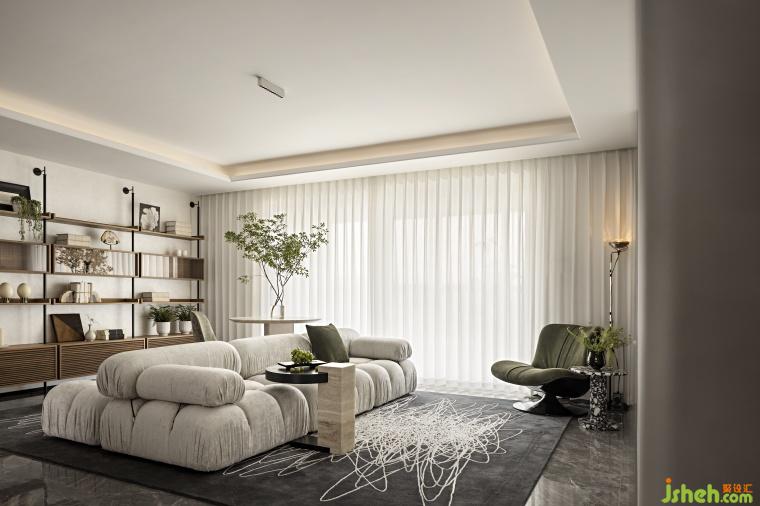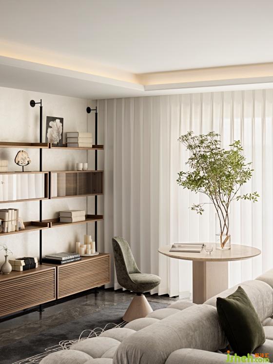 每一種場景都在激活與釋放使用者的情緒,我們模擬出生活中的“微時刻”運用生活場景,構(gòu)想未來生活方式。考慮到孩子的教育問題,客廳設(shè)置了移動的讀書區(qū),同時沙發(fā)選用了雙面款式,自由且充滿趣味。他們不希望自己的孩子過早便沉迷網(wǎng)絡世界因此客廳的電視機特意設(shè)計成移動式。