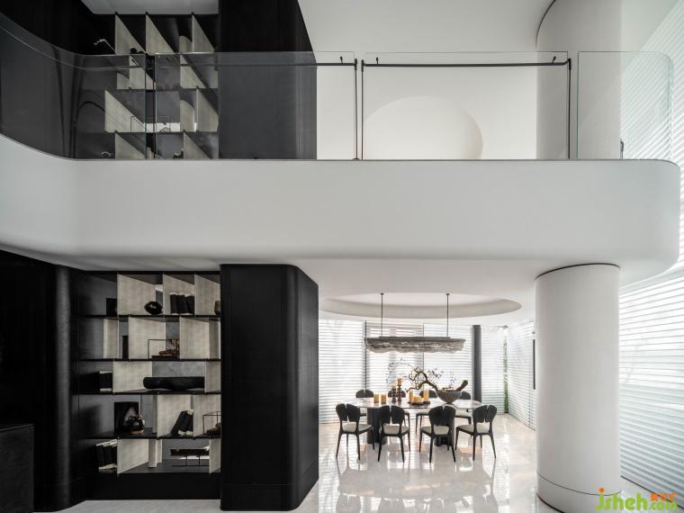 打破常規(guī),超高的挑空書架,不僅是家具更是空間的一部分,通過趣味性的設(shè)計,塑造空間形態(tài)更多變的可能性。