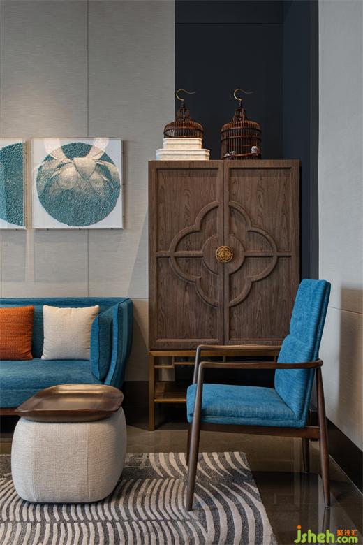 裸露的深棕原木紋理,由墻鋪展桌椅、邊柜、花窗,精心設(shè)計(jì)的燈光或隱或現(xiàn),令人倍感溫潤(rùn)與親密。高瓷藍(lán)點(diǎn)綴流線雕塑、黃銅把手及布藝沙發(fā);假日酒店設(shè)計(jì)松石綠暈染如玉燈光壁、星砂裝飾畫(huà)……幽暗氛圍中,雙色交相輝映,如千里江山圖里的只此青綠,韻味無(wú)窮。