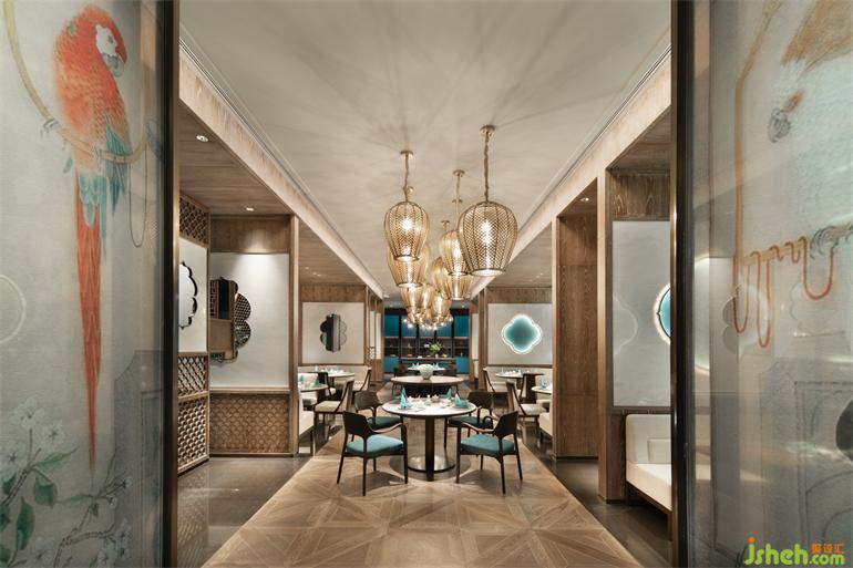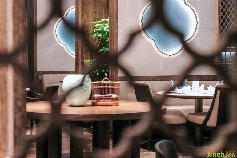 如果說(shuō)大堂是視覺(jué)的統(tǒng)治,是高亢的起首樂(lè)章,那中餐廳-彩豐樓則是集視覺(jué)、觸覺(jué)、味覺(jué)、嗅覺(jué)、聽(tīng)覺(jué)的多重復(fù)調(diào),是黃昏下的耳語(yǔ),庇護(hù)著想象與回憶。