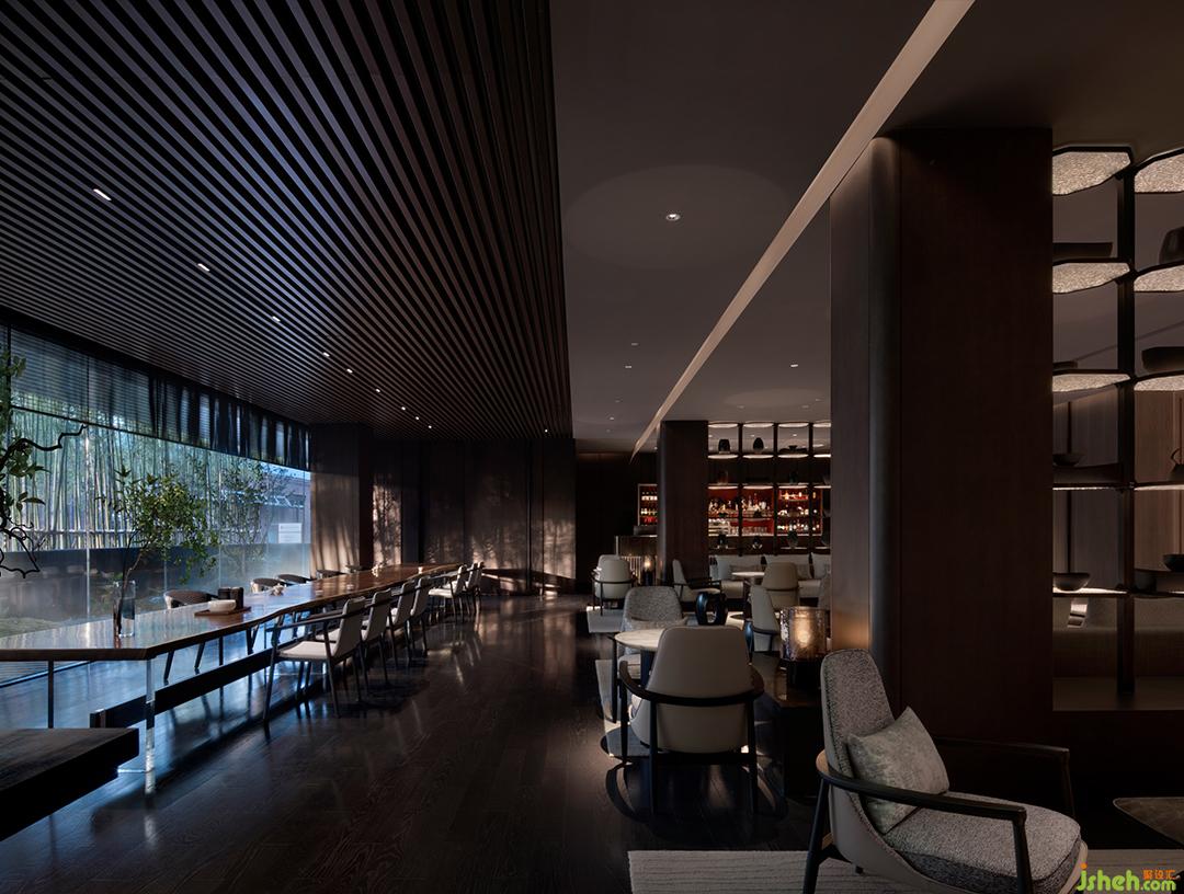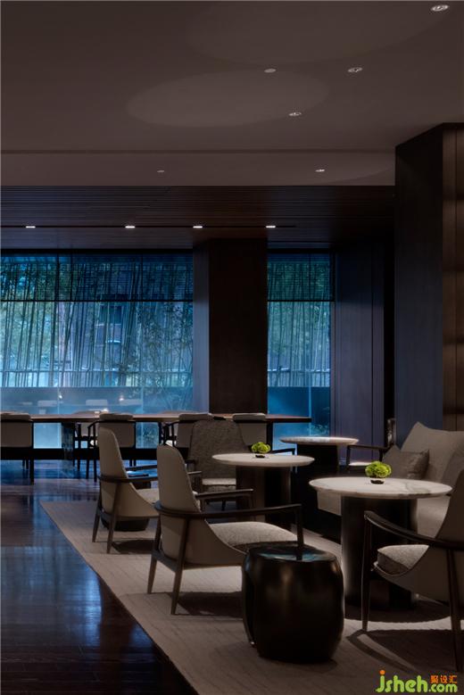 回望大堂,其形恣意流淌,其內(nèi)克制嚴(yán)謹(jǐn)??臻g中軸對(duì)稱,沿襲古典建筑的三進(jìn)院落布局,四處恢宏燈籠高懸,其下沙發(fā)、銀光屏風(fēng)悄然圍合,恰如當(dāng)代私府宅第。原空間壓抑低矮,團(tuán)隊(duì)砸掉跑馬廊,換取7.8米挑高,營(yíng)造非凡氣勢(shì),尊迎天下。
