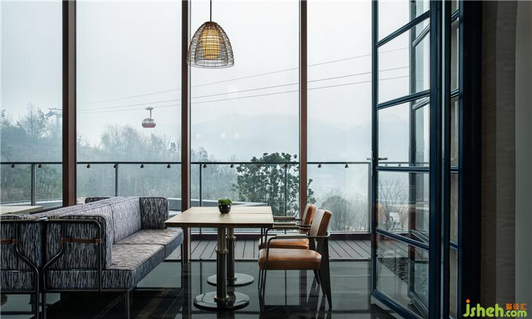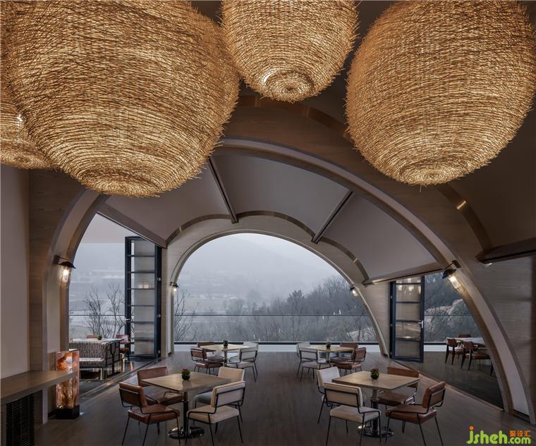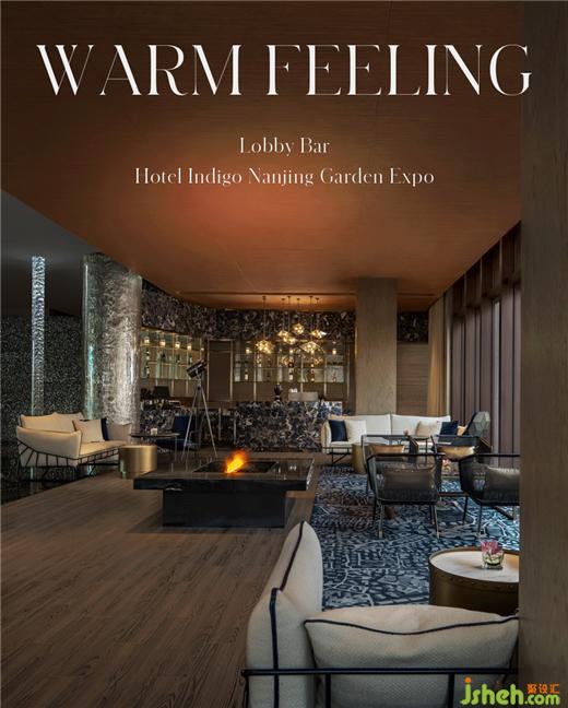 東方既白,光線穿透全幕幻彩玻璃大門,噴濺寶石虹彩。躍金沉璧,大堂流溢輕盈的夢。懸浮的鏡面金屬構(gòu)成巨大茶晶,似琥珀凝駐歲月。南京園博園英迪格酒店設(shè)計八根亞克力圍裹原木廳柱,身披銀色風蝕銹衣,書寫遠古叢林的神秘。