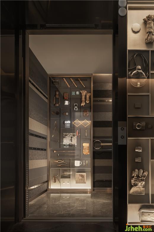 人類從未停止對(duì)地下、對(duì)星空的探索。巖石之外,YANG特別打造了勘探器具的展覽空間。轎廂是MINI展廳、走廊是陳列墻——羅盤、鐵釬、測(cè)距儀、護(hù)目鏡等不一而足,提示著推動(dòng)文明的好奇心及求知欲。