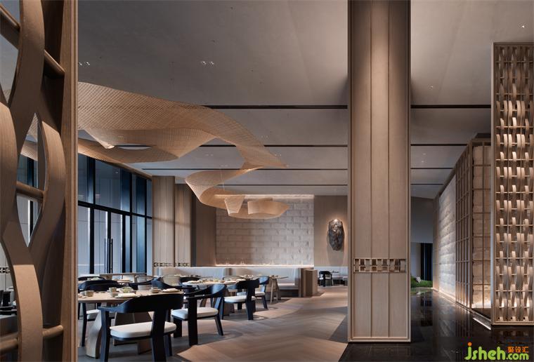全日餐廳同樣尺度闊綽,超1000平極致空間,YANG去繁就簡(jiǎn),南京酒店設(shè)計(jì)以最少的元素呈現(xiàn)更為開(kāi)闊通透的意境。質(zhì)樸肌理的涂料天花、原木線性格柵、粗野的巖石肌理墻面與淺色家具巧妙搭配,約33米玻璃幕墻,邀無(wú)邊山色,入宴四時(shí)春秋。
