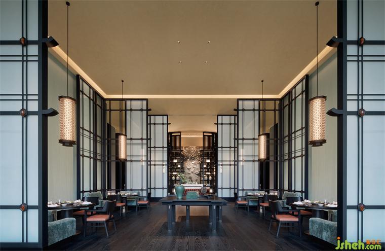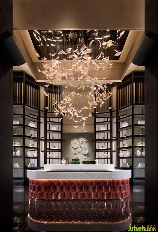 南京酒店設(shè)計(jì)相比其它空間的極致簡(jiǎn)約,中餐廳多了幾分江南的富麗雅致。澄紅淺綠,繁花叢叢,璃燈高低垂落……包房天花巧借佛頂樣式,以中空層層聚合穹頂,為6米層高的空間增強(qiáng)震憾感。