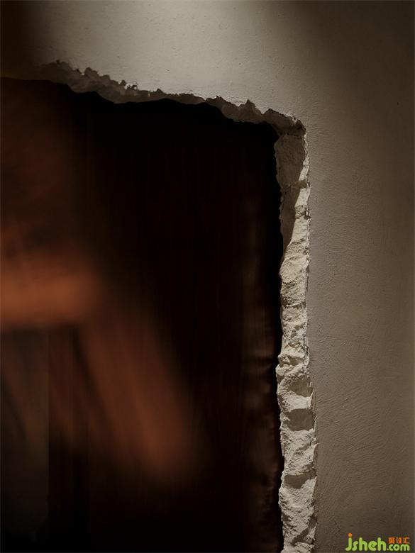 被錘子破鑿開(kāi)的包間入口呈現(xiàn)出斑駁的質(zhì)感,手指拂過(guò)切面可感觸其凹凸不平紋理。