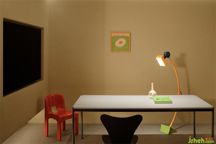 踏上臺階,開放和私密平衡于空間中。大面積的暖色鋪陳與規(guī)整的形態(tài)為空間留白,富有新意的色彩搭配半開放的空間形式,活潑與克制交織于此,青春張揚(yáng)的跳躍色彩,觸發(fā)每一個新奇的idea。