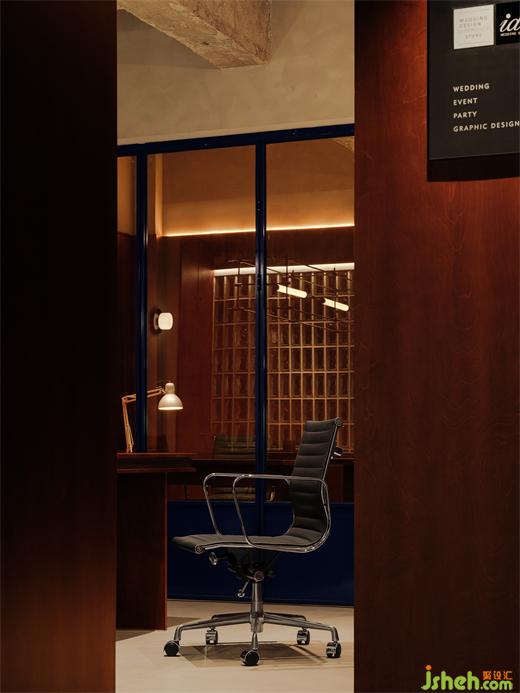 深淺不一咖色木板相互咬合,正如包豪斯里強(qiáng)調(diào)的平坦塊面。自主研發(fā)的椅子靈感來(lái)自于包豪斯字體的“A”,明確的幾何形狀,強(qiáng)調(diào)了幾何構(gòu)成和形式感。