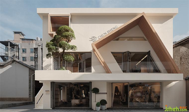 「AURORA DESIGN」此次接到的是一個舊式居民樓改造,珠寶展廳設(shè)計項(xiàng)目坐落在昆明市中心的老街區(qū),毗鄰立體停車場、舊式民居和小吃街。場地周邊的復(fù)雜環(huán)境讓項(xiàng)目變得有趣,新舊相交的張力將空間的生命延續(xù),“春天”隨時發(fā)SHENG。