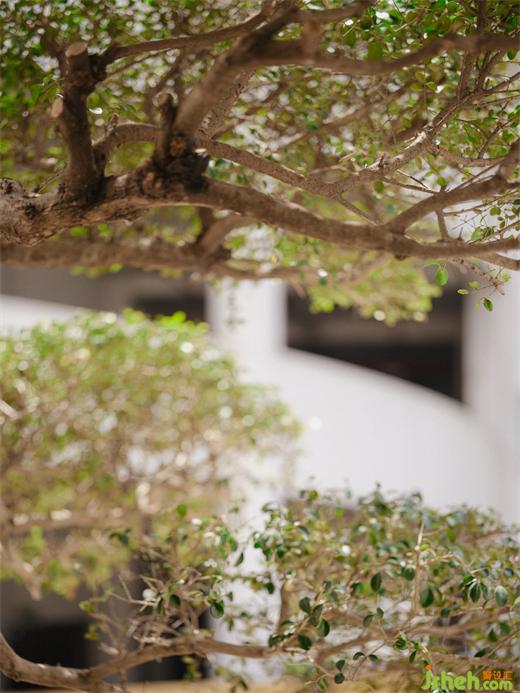 穿過(guò)工作區(qū),一樹(shù)綠意傾瀉而下,設(shè)計(jì)師保留了原址的綠植,將西側(cè)的植栽移置露臺(tái)處,營(yíng)造出工作中的‘自然時(shí)刻’,讓人沉靜愉悅,心生安然。