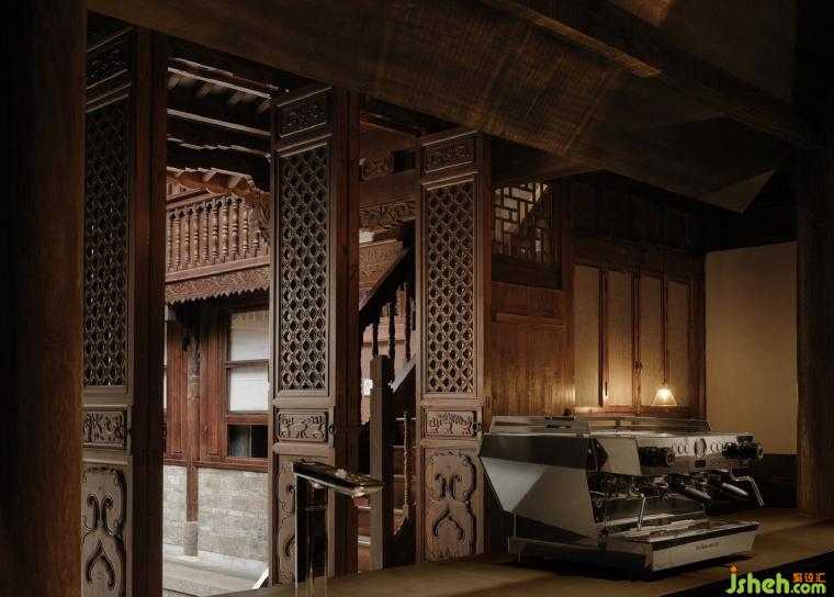 四面開間,敦厚樸實的木門扇,招攬八方來客,品釀新醇;黃銅門鎖,鑲嵌吉祥字樣花紋,穿過時光的長廊來慰問旅人。院落中安放了外擺座椅,增加使用面積,來客隨性地落腳,享受自然的呼吸時刻,讓空間的氛圍更加活潑和自由。